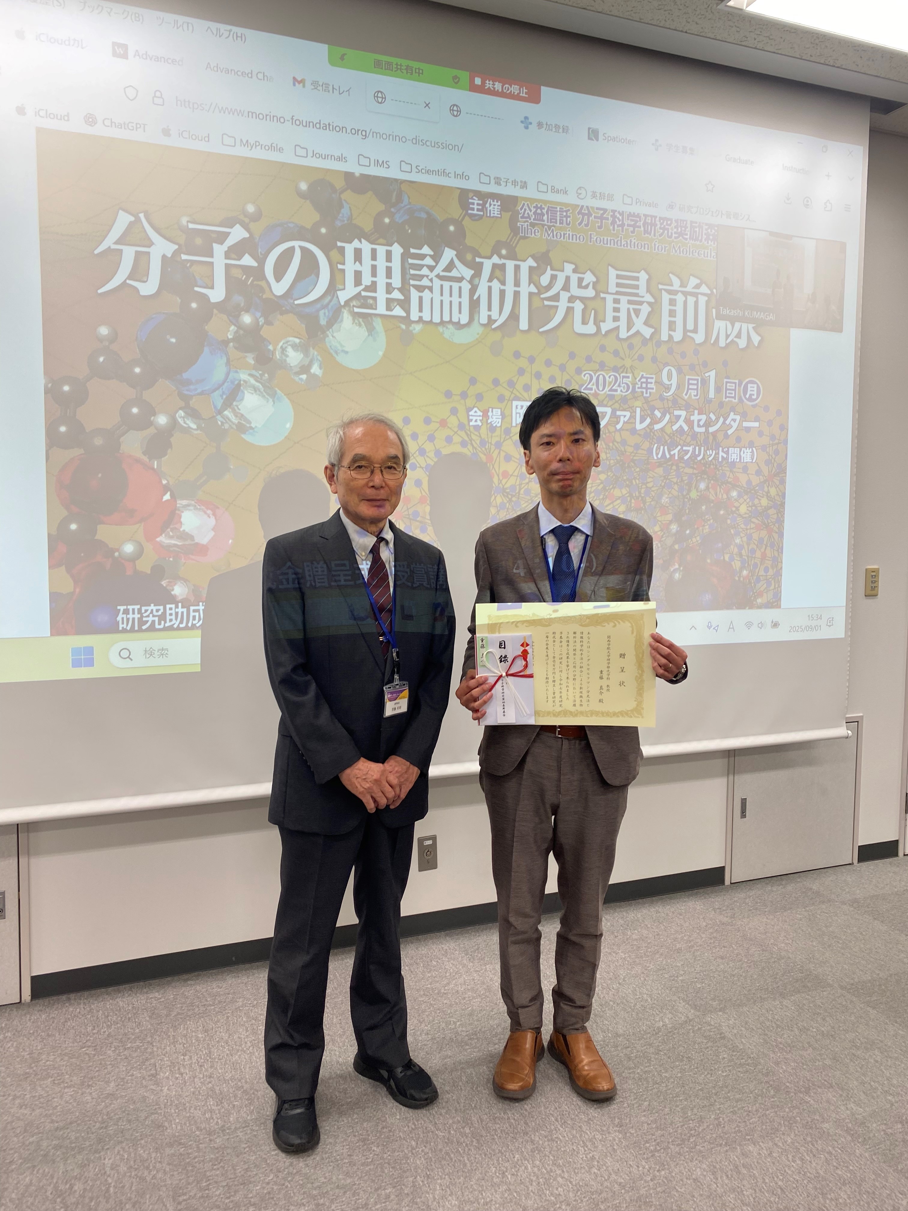 重藤真介・理学部教授が2025年度分子科学研究奨励森野基金研究助成を受賞