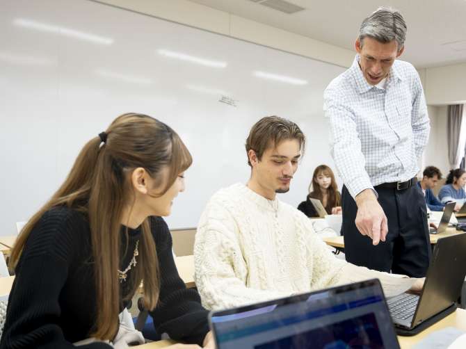 教授との距離が近く、気軽に質問しやすい環境です。国際系の科目も充実しているので、英語力をしっかり伸ばせます。