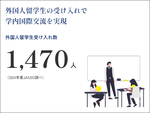 留学生と関わる交流制度や、海外学生と同じ教室で学べる融合科目なども多数展開しています。