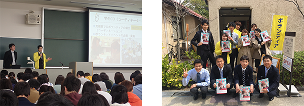 スピーチと併せて、関学生を中心に活動しているボランティア団体の情報を掲載した「春ボラ」を配布しました。