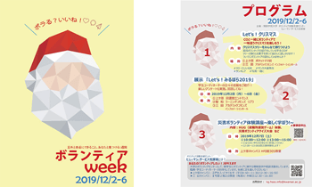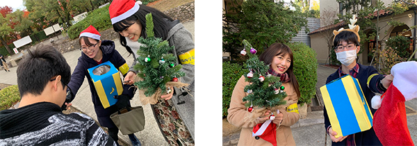 今年はクリスマスとボランティアを掛け合わせた企画を行いました。また学生コーディネーター(以下、学生CO)自身がキャンパス中を練り歩き、関学生の皆さんに話しかけることで学生COのことを知ってもらうきっかけを作ることができました。最初は「ボランティアってよく分からないんですよね…」と言っていた学生も、学生COと話すうちに「じゃあ支援室行ってみます」と来室してくれ、最後には「ボランティアに行ってみます!」と言ってくれる姿も見られました。参加してくれた皆さん、ありがとうございました!