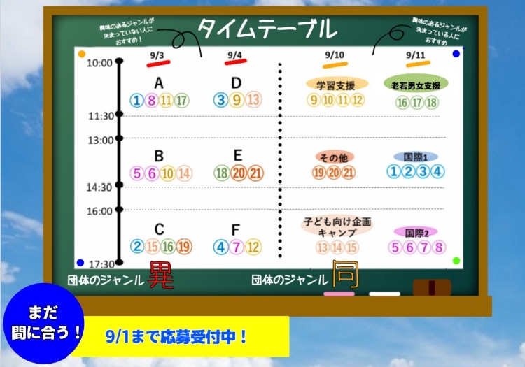 ※出展団体や日時、ジャンル分け等詳細は添付しているPDF(チラシ)もしくは画像をご参照ください。