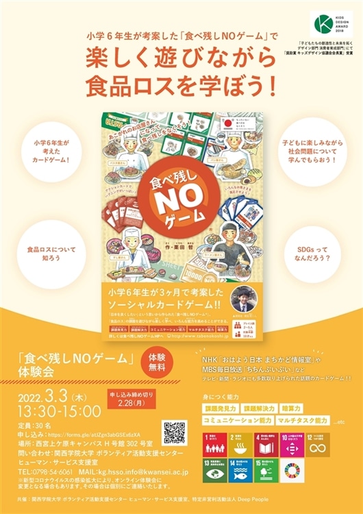 3月3日(木)、西宮上ケ原キャンパスで「食べ残しNOゲーム 体験会」を開催しました。