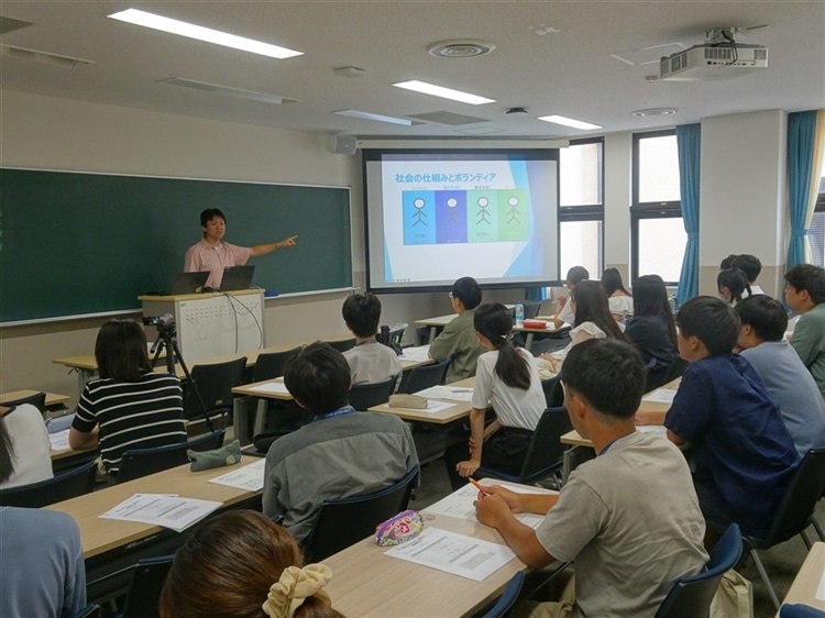 ②「あなたにとってボランティアとは?」(講師:関 嘉寛 先生【ヒューマン・サービス支援室 室長、社会学部教授】)