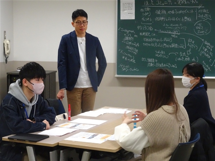 関西学院大学社会学部の卒業生で、ファシリテーターとして各地の市民や大学生と関わる川中大輔さんを講師としてお招きし、「呼び込み×巻き込み」の2つの視点でのアプローチについて、様々な団体の実践例を踏まえてレクチャーしていただきました。