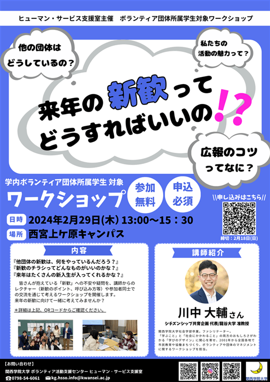 対象:ボランティア団体に所属している関西学院大学の学生、教職員