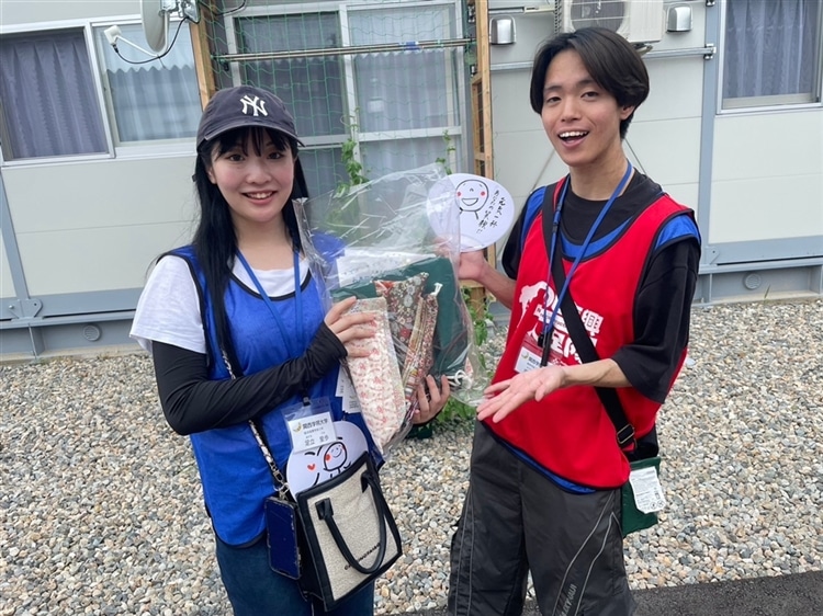 第1回に参加した学生からの引継ぎを踏まえて、仮設訪問前に練習をする、訪問時にうちわやお水、西宮市のボランティアの方が制作された巾着などをお届けするなどのを工夫をしたことで、住民の方と沢山お話をすることができました。