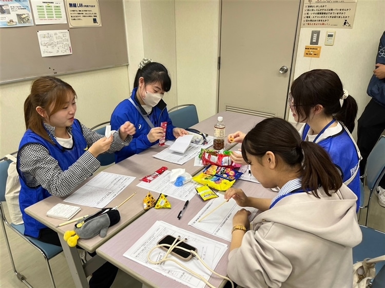 1日目は授業後に夜の出発だったこともあり移動のみのプログラムでしたが、移動中の電車内では交流イベントで行うハロウィン装飾づくりのために折り紙を練習したり、参加メンバー同士で話して親睦を深めたりと、学生メンバーが自主的に色々な準備を進めていました。