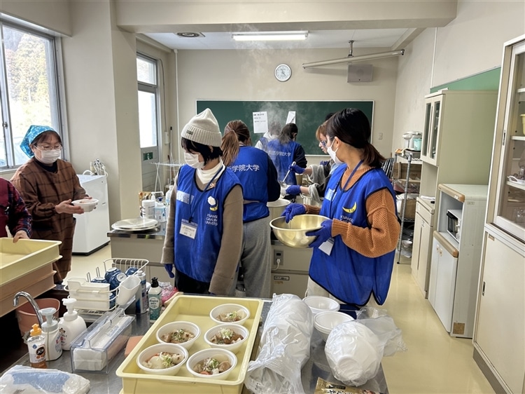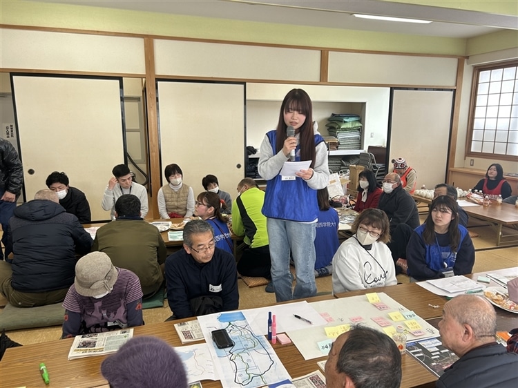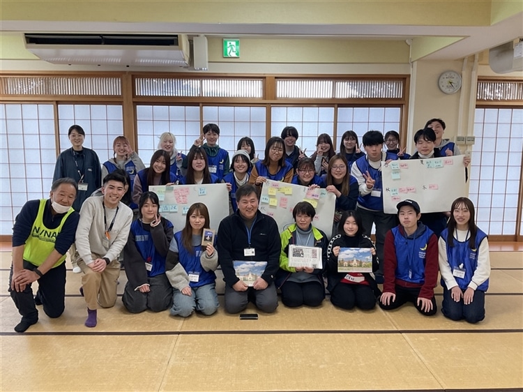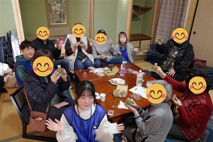 この日は前日の活動から継続して、七尾市豊川地区の皆さんと三世代交流会を行いました。学生は交流会班とおでんチームに分かれ、地域の方々と活動を通し交流を行いました。