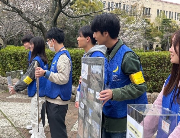 能登半島地震に対しては多くの学生より自分たちで継続して何かできることがないのかという声が届けられました。このような状況を鑑み、ヒューマン・サービス支援室の管理運営のもと、今年度も学生による募金ボランティア活動を関西学院大学2024年度卒業式・2025年度入学式に実施しました。当日は学生だけでなく保証人の方々からも支援が寄せられました。