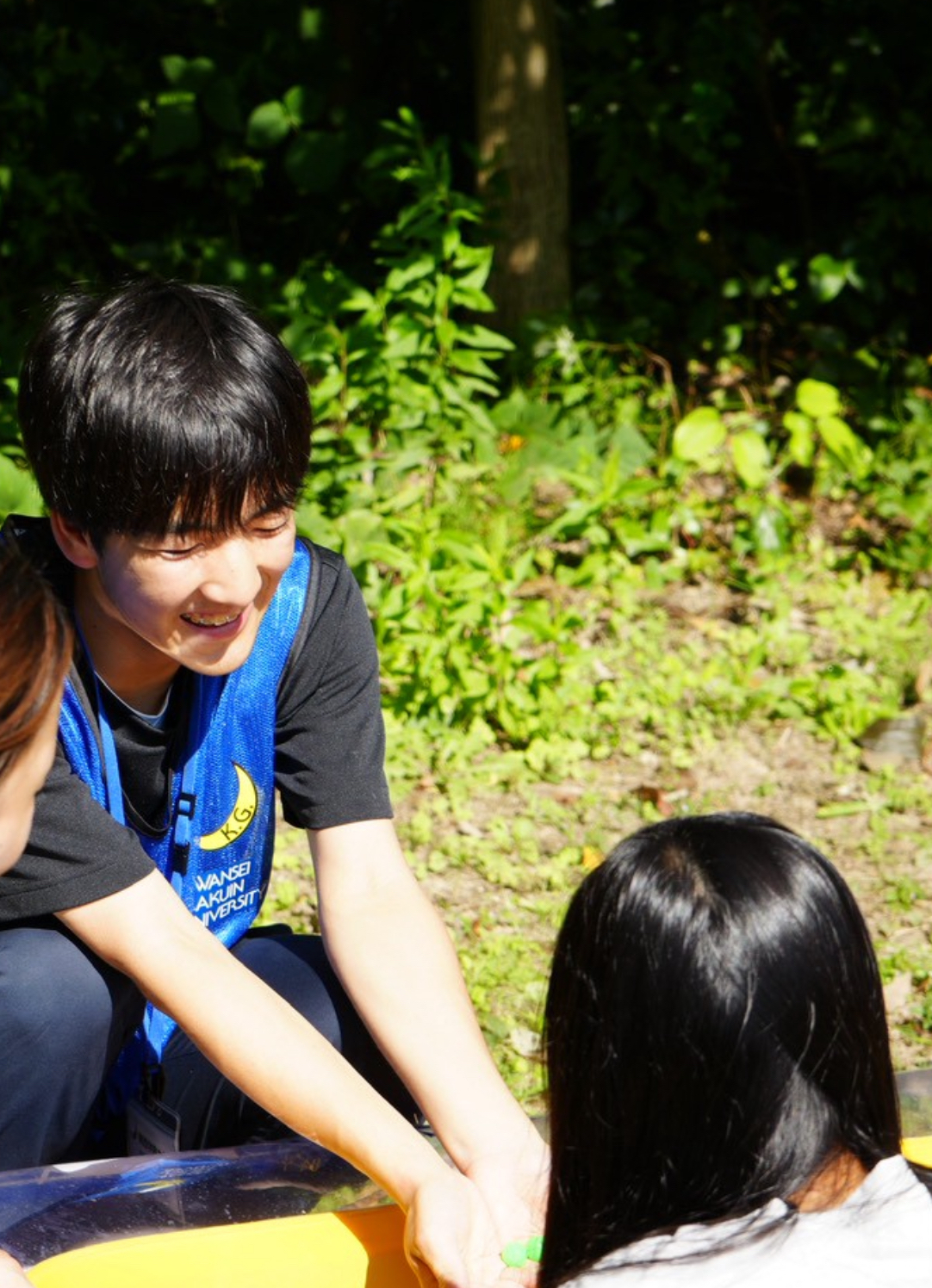 ①阪神・淡路大震災の被災地である本学の学生が現地に行くことで、現地に元気と希望を届け、不安 になっている被災者の立ち直りに力を与える。