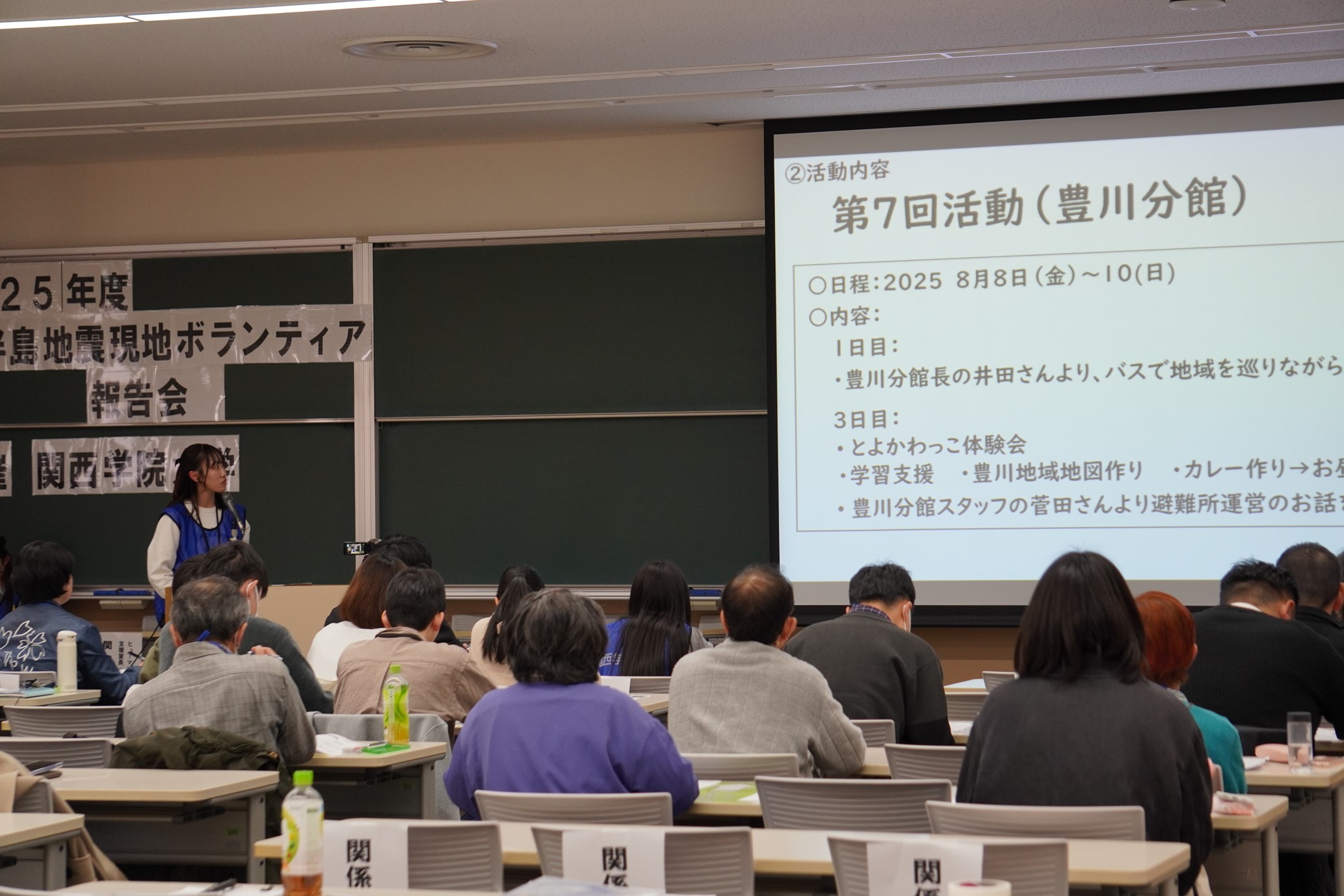 今回の報告会では、2025年度に実施した全4回の現地ボランティアについて、活動内容や学生が現地で感じたこと、学びについて報告しました。