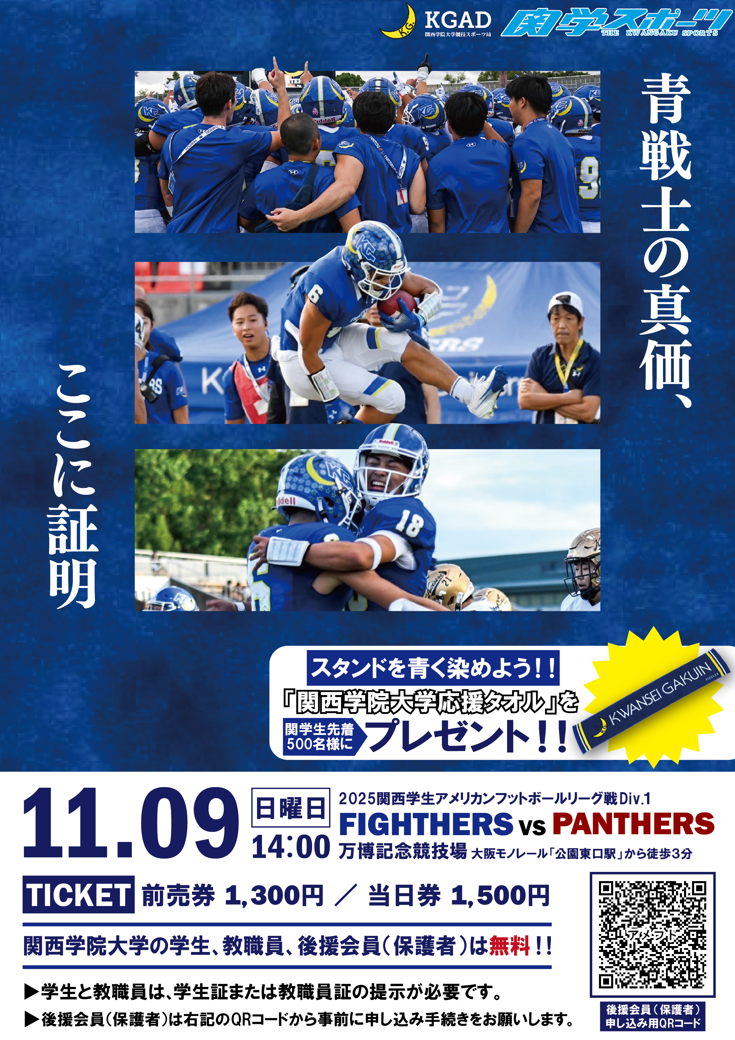 関西学院大学体育会アメリカンフットボール部FIGHTERSのリーグ最終節、立命館大学戦(11/9(日))。