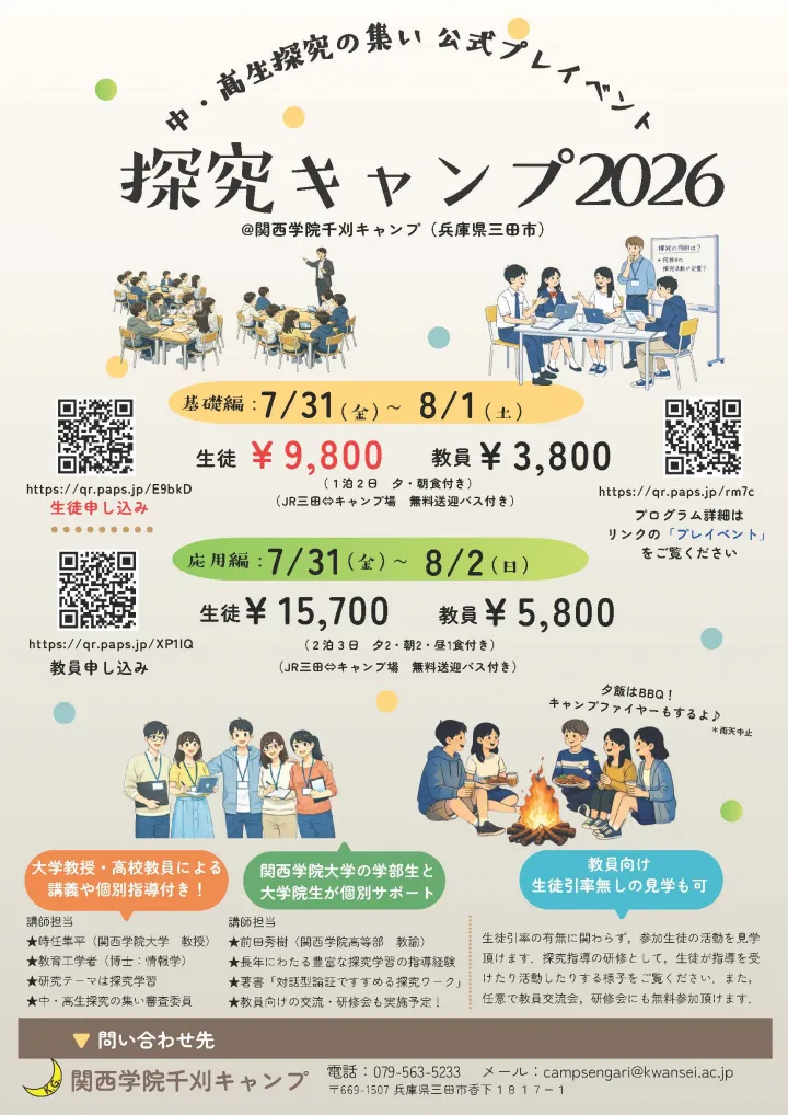 中学高校生対象 探究キャンプ 2026 参加者募集