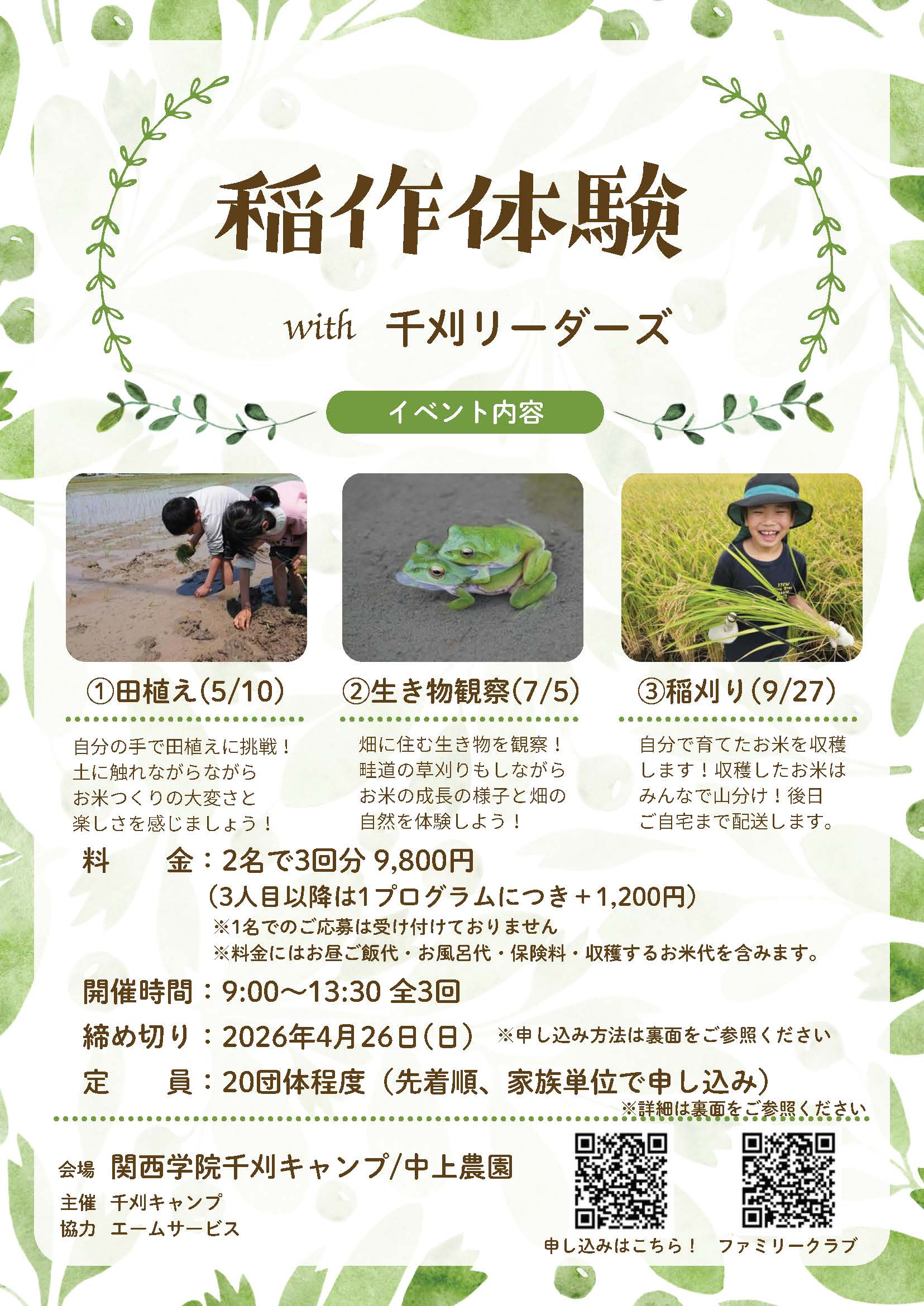 ~田植えから稲刈りまで~ 千刈キャンプ 稲作体験 プログラム 参加グループ募集中