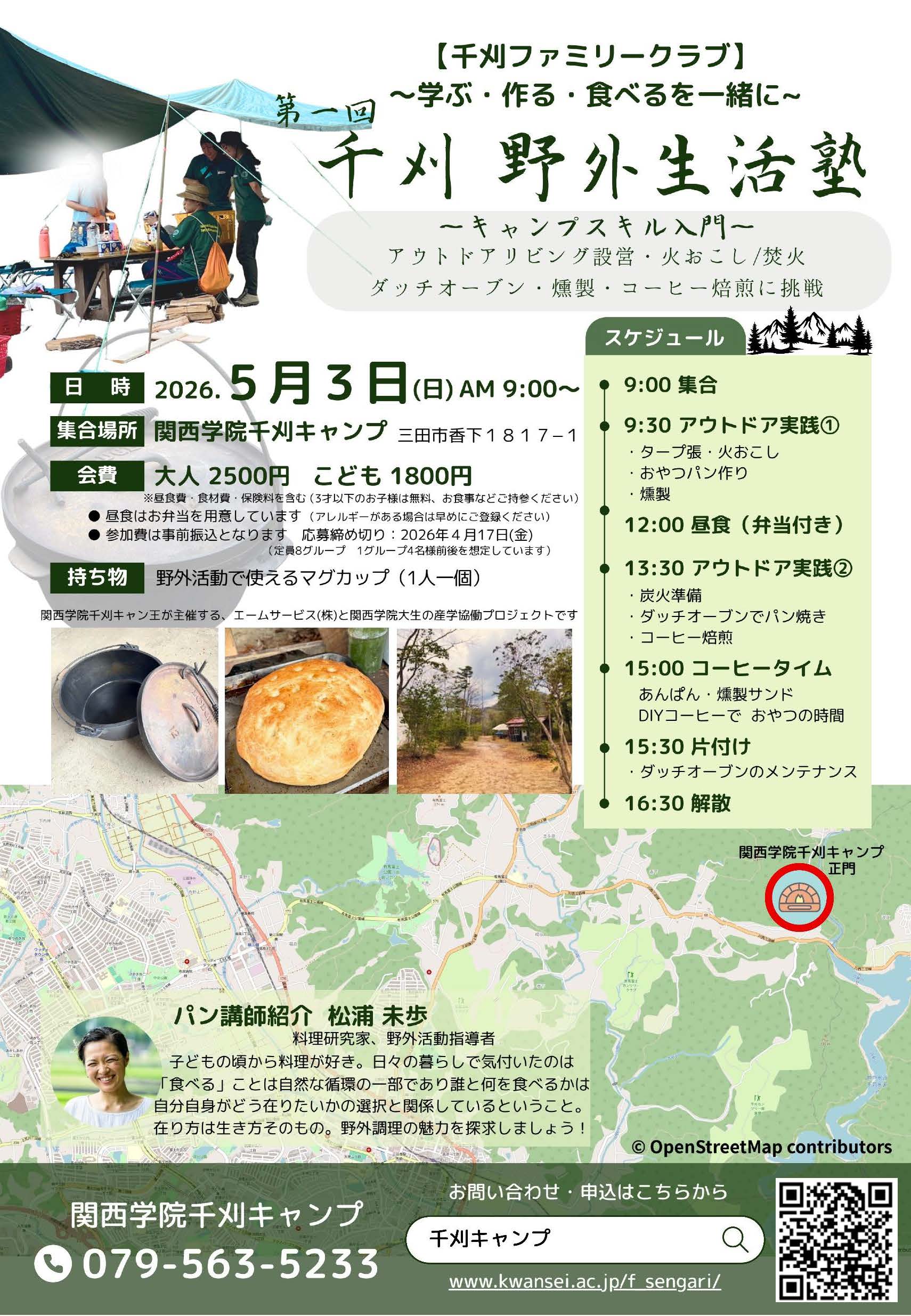 講師は1月に開催した『石窯パン工房』の松浦未歩先生と、千刈キャンプの田中が担当する新企画。