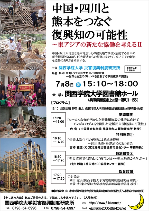 【申し込み・問い合わせ先】関西学院大学 災害復興制度研究所