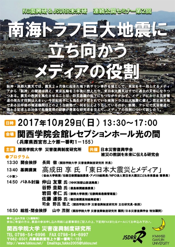連続公開セミナー第2回「南海トラフ巨大地震に立ち向かう メディアの役割」開催のお知らせ