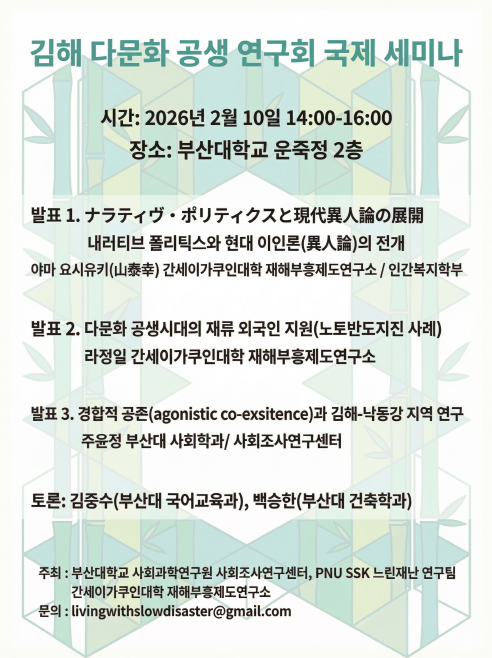 2026年2月10日(火)、韓国・釜山大学社会科学研究院にて「多文化共生研究会国際セミナー」が開催されました。