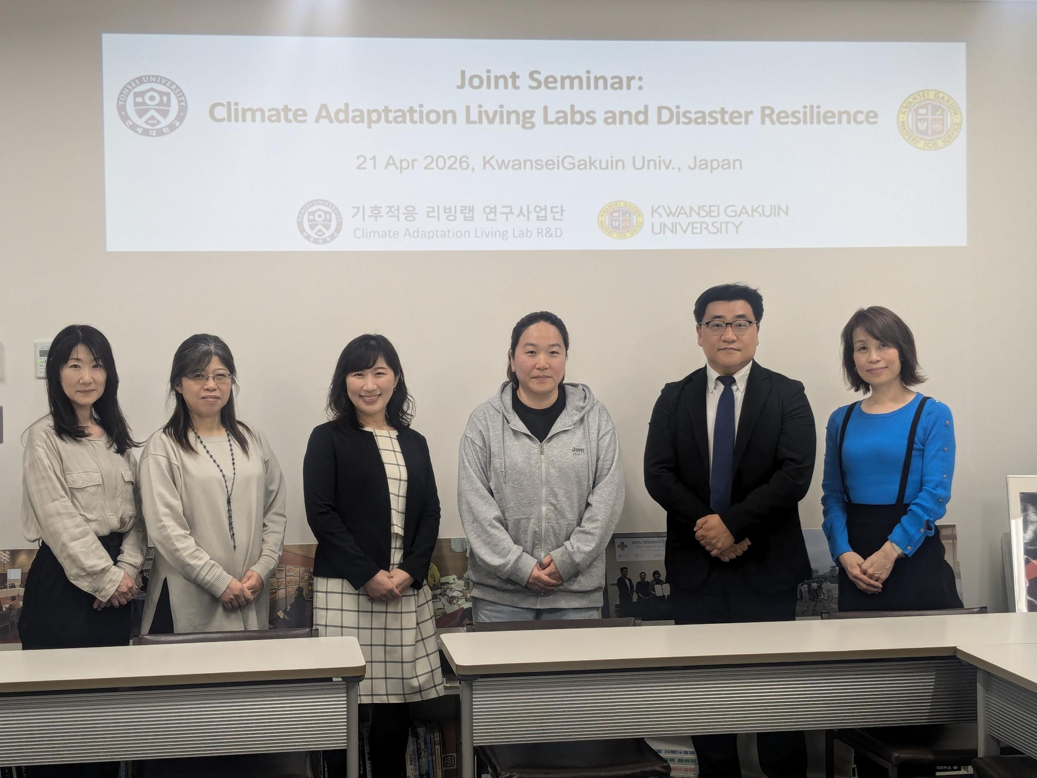 4月21日、関西学院大学災害復興制度研究所と延世大学気候適応リビングラボ研究事業団の共催により「日韓気候適応リビングラボ及び災害レジリエンス共同セミナー」が開催されました。