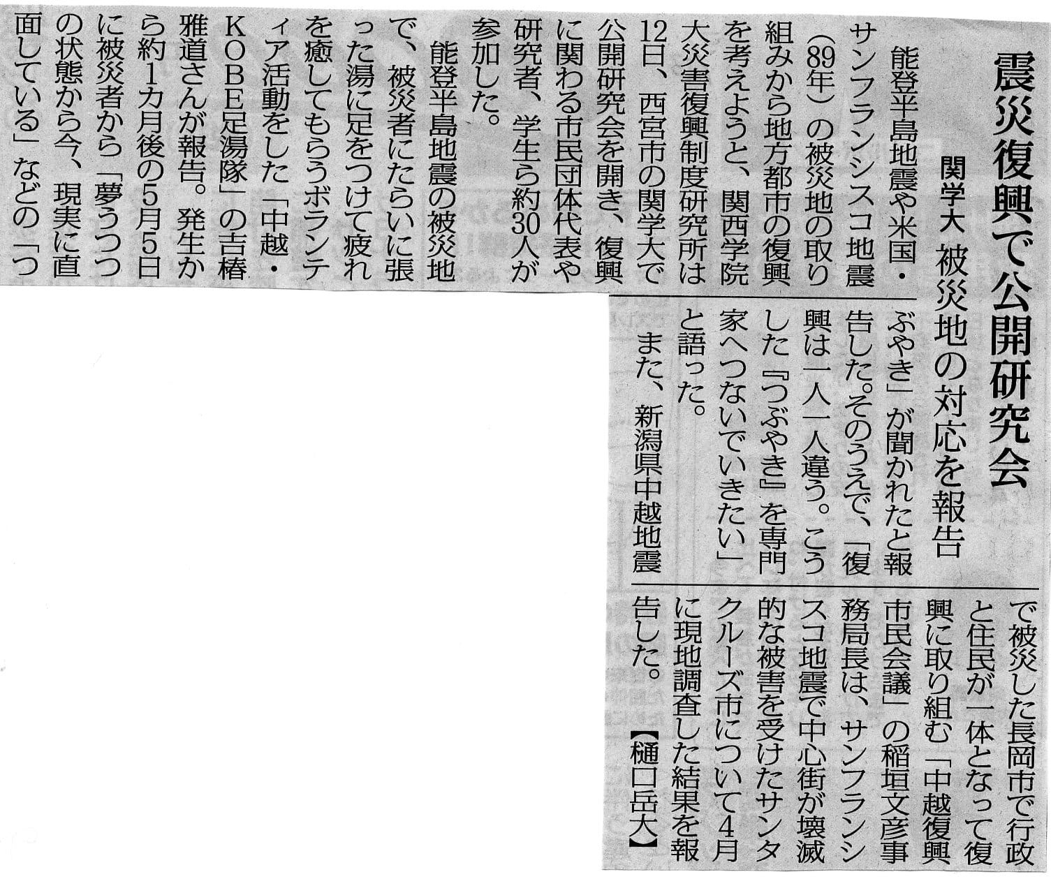 2007年5月13日 公開研究会についての記事が掲載されました。 ------毎日新聞