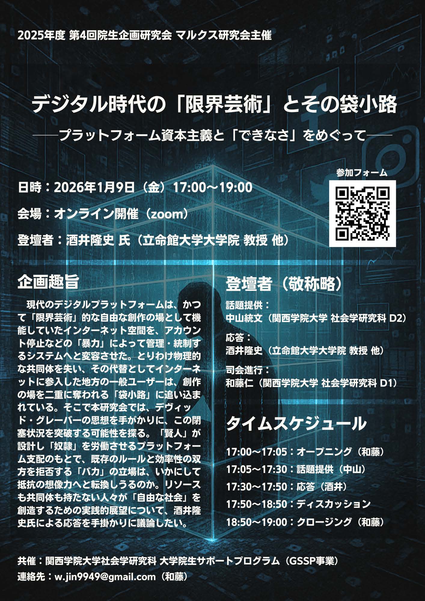 共催:関西学院大学社会学研究科 大学院生サポートプログラム(GSSP)事業
