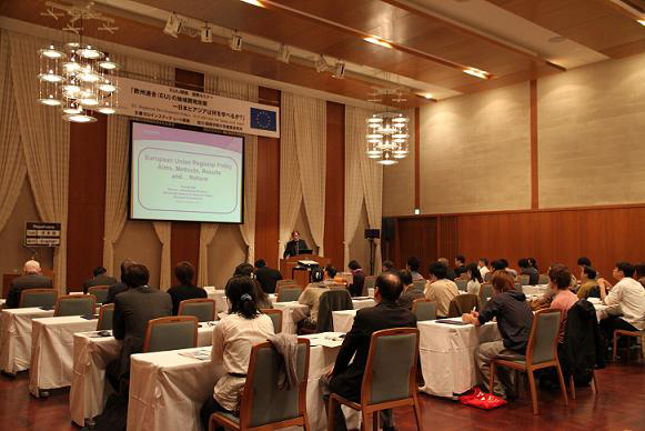 このたびEUの地域開発の担当者を招き、欧州での地域開発への資金援助の政策を紹介するとともに、日本、アジアの地域開発政策と対比した。(2011年10月5日)