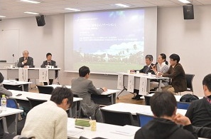その後、薗氏、司法研究科丸田隆先生、経済学部安岡匡也先生に加わっていただき、パネルディスカッション形式で経済学、法学とさまざまな視点からコメントいただきました。