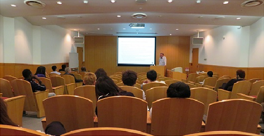 講演ではEUを中心に世界各国の労働時間、有給休暇、仕事の満足度、幸福感、給与等のデータの比較がされた後、シュラーデ准教授の出身国であるドイツの雇用状況について説明されました。また、EUで働くために必要なビザの紹介もありました。