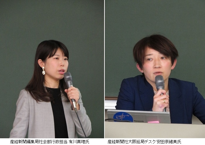 2019年12月20日(金)に産経新聞より2名の講師をお招きし、産研講演会「関西の未来はどうなるか」を開催いたしました。まず、産経新聞編集局社会部行政担当の有川真理氏から「大阪都構想とは何か」をテーマに、続いて、産経新聞社大阪総局デスクの安田奈緒美氏より「2025年大阪・関西万博 IRは関西をどう変えるか」をテーマにお話しいただきました。2010年に橋下大阪府知事(大阪維新の会)が発表した大阪都構想。社会部記者として、大阪市役所に日々通い取材をしている有川氏より、都構想のメリットとデメリット、維新一強、今後の行方、について、取材をもとに解説をいただきました。