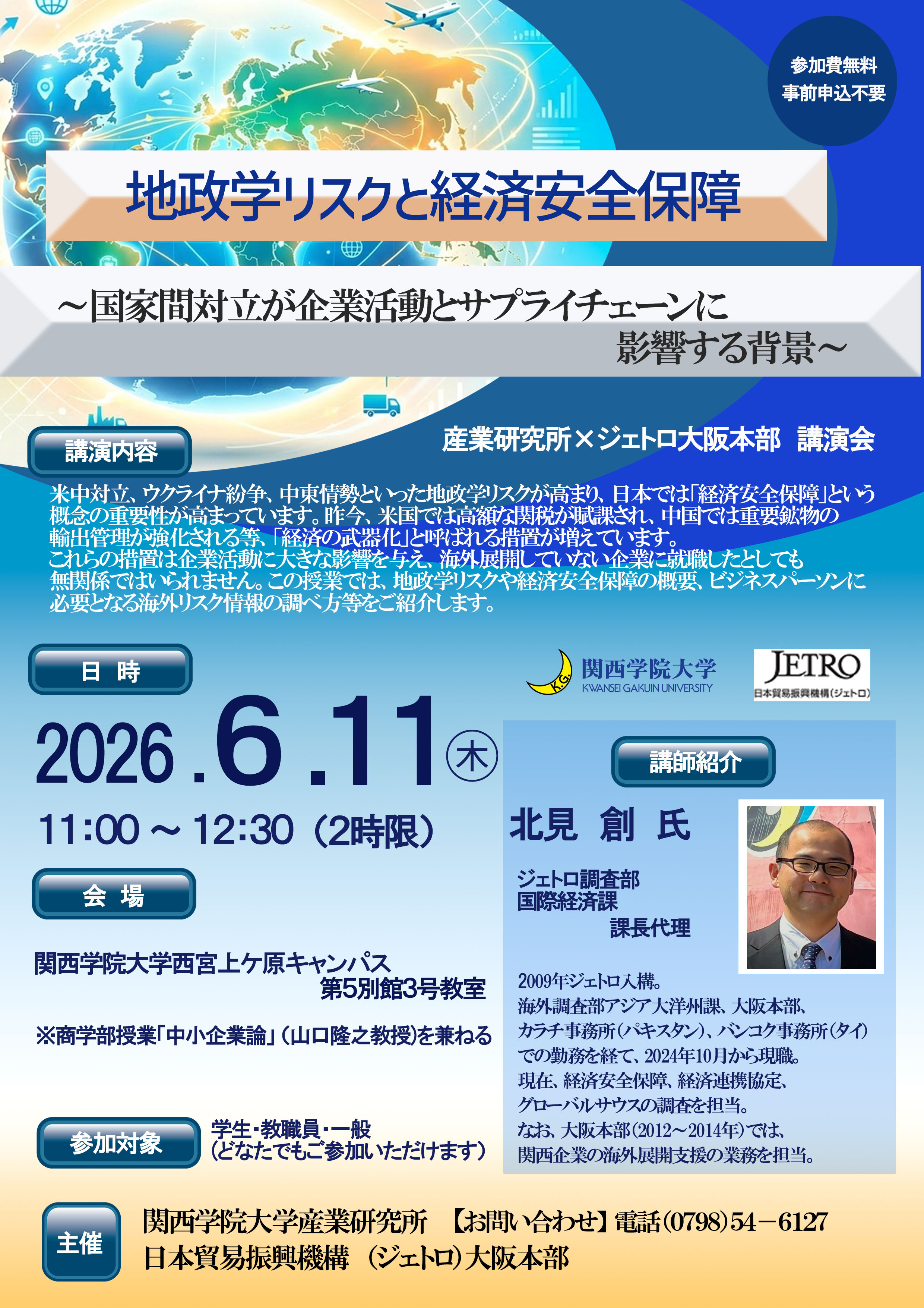 産業研究所×ジェトロ大阪本部講演会を開催いたします。