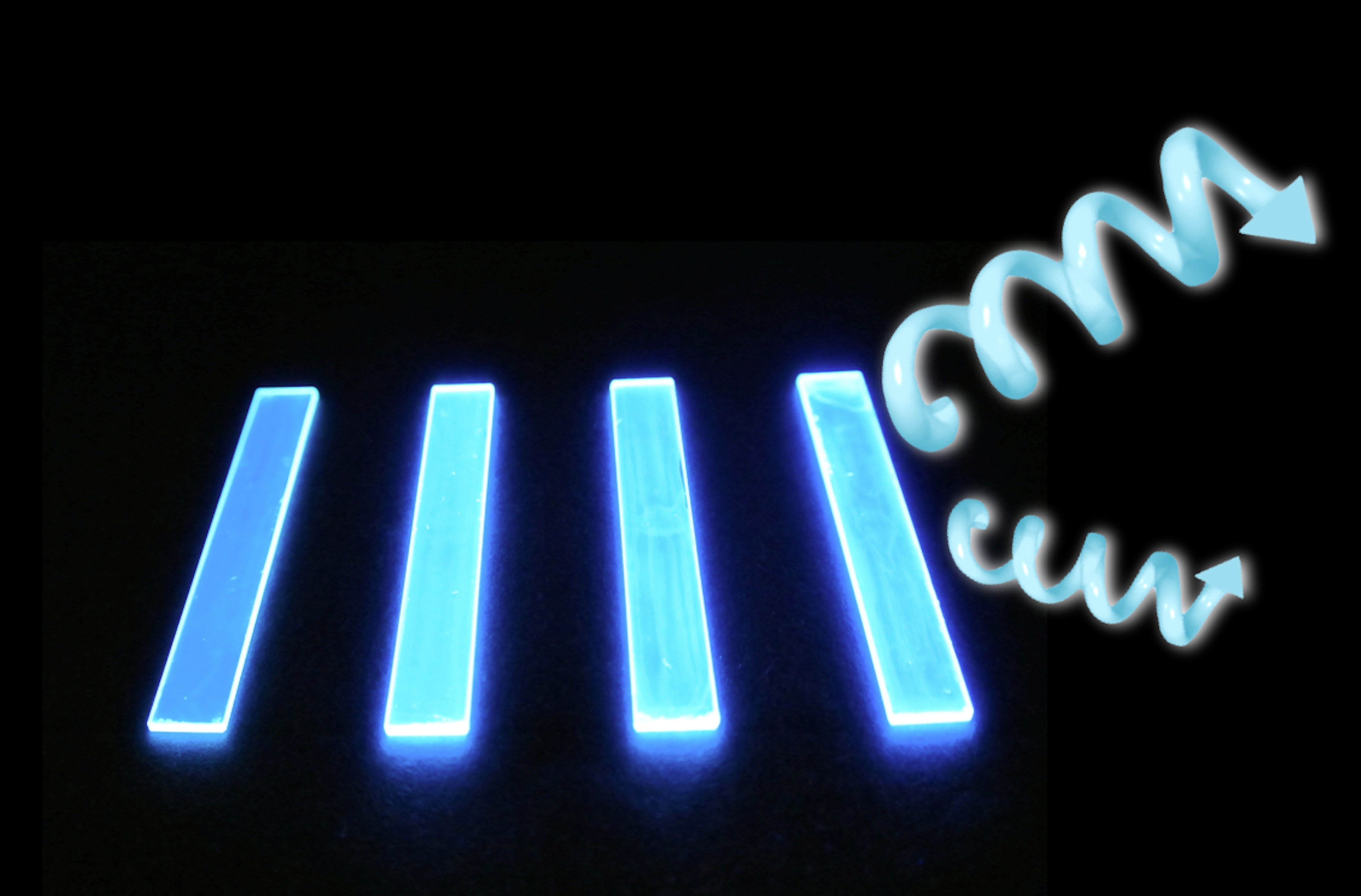 「円偏光」という言葉を聞いたことがあるでしょうか。光には右巻きと左巻きという2つの向きがあり、通常の光では、どちらか一方に偏ることはありません。ところが分子の形を工夫すると、どちらか一方の向きを強くすることが可能になります。このような状態の光を円偏光と言い、私が取り組んでいるのは、その偏りを意図的につくり出す分子の設計です。特に発光する有機分子の中でも「円偏光」を放つ材料の開発を通じて、光と物質の相互作用を制御する最先端の研究を進めています。