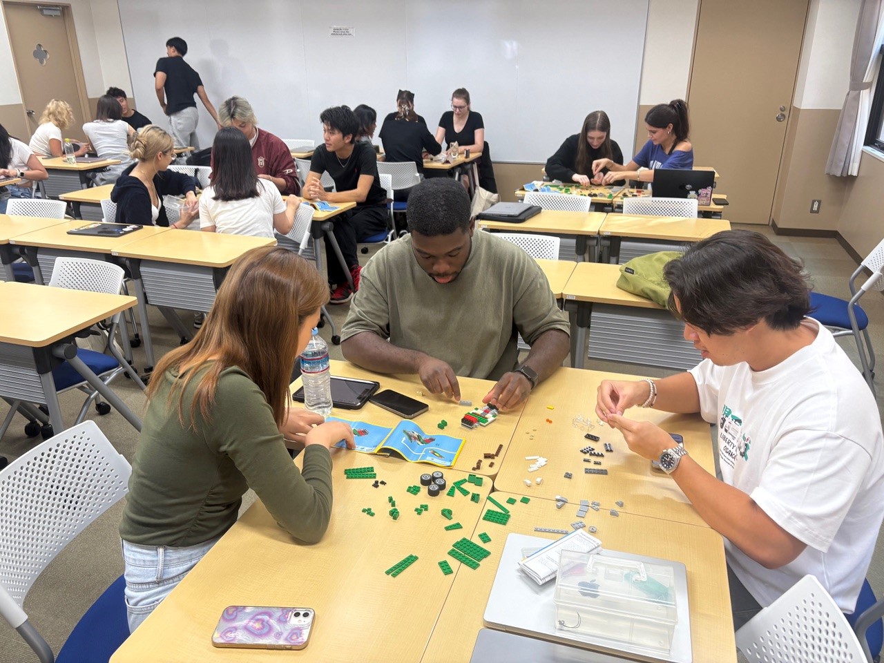 具体的な取り組みの一つは、学生が自動車会社の経営者になりきり、レゴ・ブロックを用いて車を製造・販売するシミュレーション・ゲームの導入です。コストや需要を考慮しながら、自身がどのような意思決定を行い、その判断がどのような結果につながったのかを体験してもらいます。様々な状況を総合的に捉え、自分なりの考えを形にするプロセスを通して、実践的な判断力を養うことが目的です。またこのゲームはチームでプレーするので、相手と意見が食い違う中で折り合いをつけて進めなければなりません。授業によっては、留学生と日本人学生を交えてゲームを実施する機会を設けることもあり、文化的な違いの中で、自身の考えを英語を使って言葉にして伝える力を育てています。