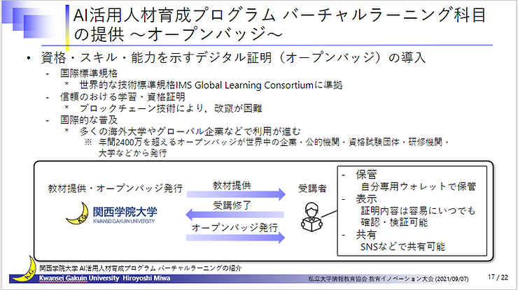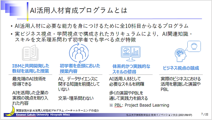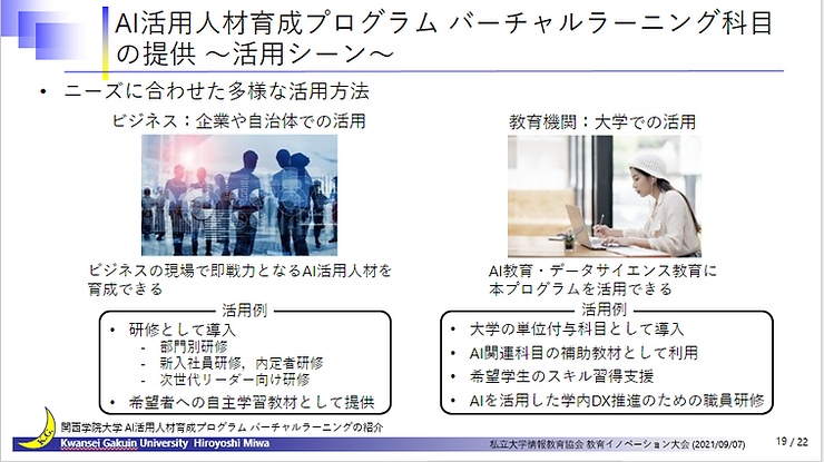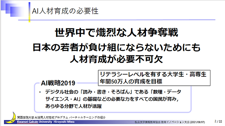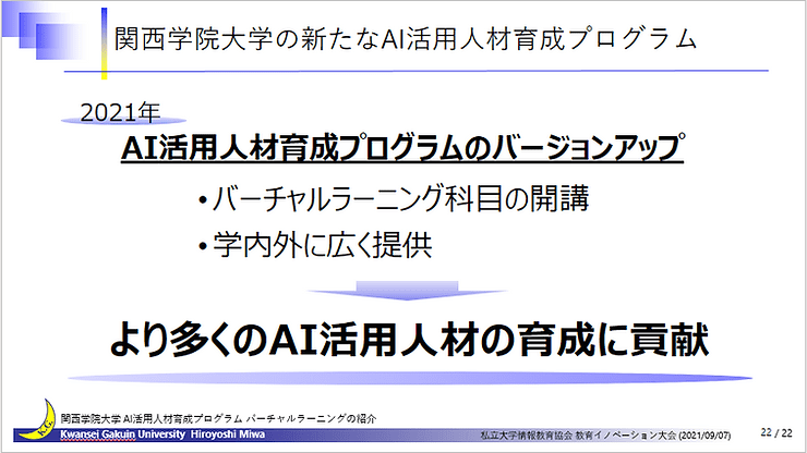 「AI 活用人材育成プログラム バーチャルラーニング版の紹介」/関西学院大学(巳波弘佳)
