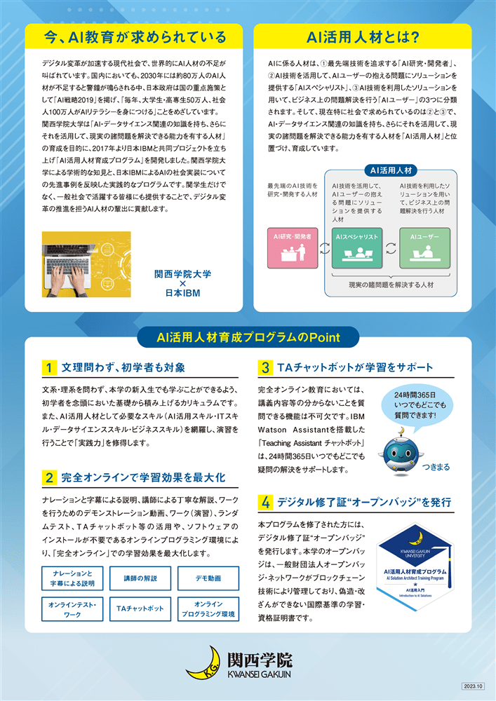 ・AI活用入門、AI活用アプリケーションデザイン入門、AI活用データサイエンス入門