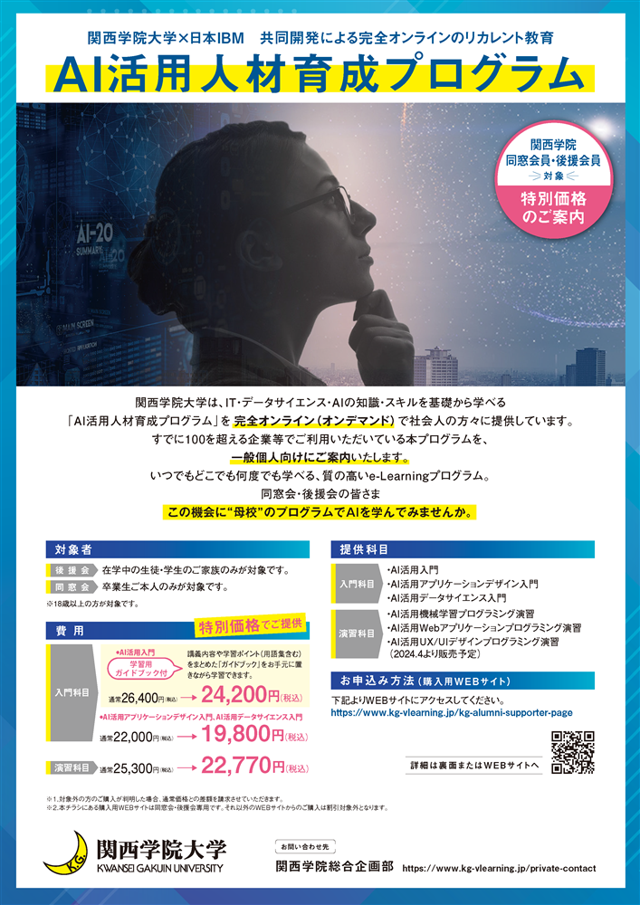 本日より、AI活用人材育成プログラムの同窓会・後援会向け特価販売を開始いたします。