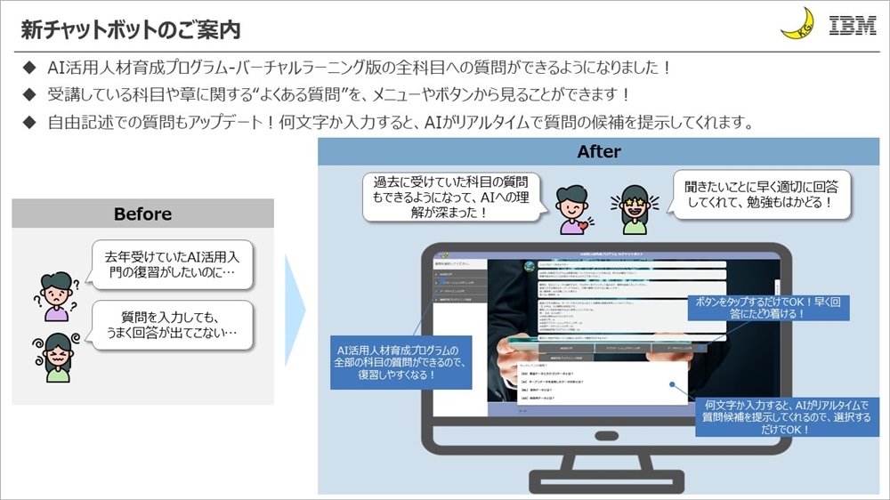 「AI活用人材育成プログラム」ご受講時にご利用いただけるTAチャットボットをリニューアルしました。