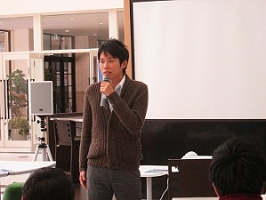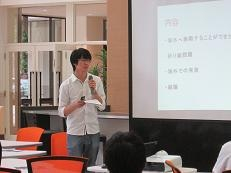 大学を卒業するに際して誰もがぶち当たる進路の問題。多くの友人が就職活動をする中、いろいろ考え様々な方々に相談し、アドバイスをもらって大学院のIMCへの進学を決めた横田くん。彼の選択にあたって友人や先輩の意見は勿論、総合政策学部の小西先生や西本先生からの助言が大きかったことで、先生の言葉などを紹介。「専門知識なしに人を助けることは出来ない」との西本先生の言葉を軸に、将来を模索していった過程などを話していただきました。参加した30名ほどの学生は、自分自身に置き換えて横田くんの言葉を参考にしていたようでした。