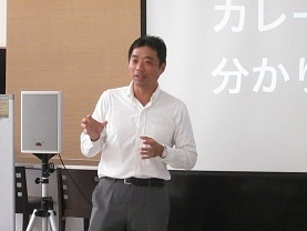 参加した学生は50名。これからのエネルギー問題の解決策になるであろう太陽光発電の作り方について図を用いてわかりやすく説明してくださいました。太陽電池は、温室効果ガスを出さないクリーンなエネルギーであるなどの利点と、発電コストが高いなどの問題点ある。しかし、「太陽光は利用すべき重要なエネルギー源」と、先生は話されていました。
