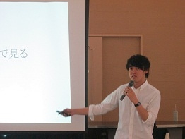 twitter有名人のタイプとして『つぶやきっぱなし型』『独り言型』『寡黙型』の3タイプに分けた分布表に学生たちは興味深々。話はお題の『裏の顔診断』に。診断例を挙げて学生の笑いを誘っていました。山田先生は、ツイート回数や時間帯などでを分析対象に。参加者の多くが気軽に活用しているツールということもあり、参加した20名ほどの学生たちも終了後に質問に来るなど講演から刺激を得たようでした。