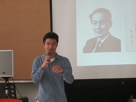 スクリーンに次々と映し出される物理学の偉人たちは、参加した学生たちにも馴染みのある名前が多く、「湯川秀樹」などは文系の学生でも知っているからか、みんな静粛に聞いていました。