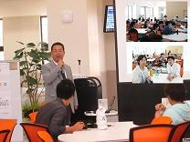 参加者は、約50名。講演者である理工学部 情報科学科 巳波先生(アカデミックコモンズ活性化委員長)は、アカデミックコモンズは単なる建物ではなく、ここで繰り広げられる活動こそがその本質であり、「関西学院大学」を変える大きな力になると語りました。