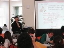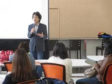 参加学生は60名。外国語を習得するには、環境づくりや多くの学習時間と習得したいという気力などが必要であることを解りやすく説明していただきました。集まった学生たちは、メモをとるなど真剣に聞いていました。