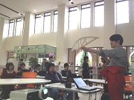 『地球ゴマ』や『車輪と回転台』の登場で会場は最高の盛り上がり。参加した60名ほどの学生教職員も楽しい時間を共有しておりました。物理ということで今回は理工学部の先生方も沢山参加して森くんを見守っていました。
