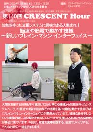 - 内容:人間を支援する技術も年々進歩しており,単なる機械から知能を持ったシステムへ,そして最近では脳や筋肉などの活動を基に機械を動かす技術(BMI:ブレイン・マシン・インターフェイス)が開発されています.複雑な操作をしなくても機械が動く,次の動きを察知してロボットが支援してくれる,そんな時代が身近に来ています.今回は,筋電で食事支援する,脳波でリハビリする,そんな技術の一端をデモします.