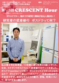 - 内容:私は博士号を取得後、10年間に渡り世界3カ国(イギリス、日本、カナダ)でポスドクとして武者修行を行ってきました。ポスドク(postdoc)って何? ポスドクってどうやったらなれるの? ポスドクって楽しい? ポスドクって将来はあるの? 不安定ですが、自由なポスドクの魅力、苦悩、将来について、思うがままに話します。