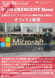 - 内容:学生諸君の多くが卒業後働く場になるオフィス。オフィスの環境やレイアウトには、それぞれの企業のワークスタイルが反映されています。日本企業でポピュラーなオフィスレイアウトはどのような経緯でもたらされたのか?世界の著名な企業のオフィスはどのようなものなのか?オフィスレイアウトと企業業績との関係はあるのか?などを簡単に解説します。