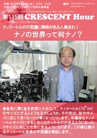 - 内容:黄金色に輝く金を非常に小さくして,ナノメートル(10-9 m)のサイズにするとどうなるでしょうか。その色は,形やサイズに応じて赤くなったり青くなったりします。半導体もナノメートルサイズにすると光らなかったものが光るようになったりサイズに応じて七色に光るようになります。この様な微小なナノメートル世界の不思議を解説します。