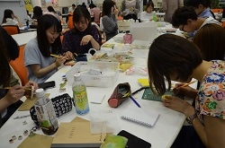 参加者は、自分の好きなデザインの消しゴムはんこ作り、自分だけのノートを作りあげました。