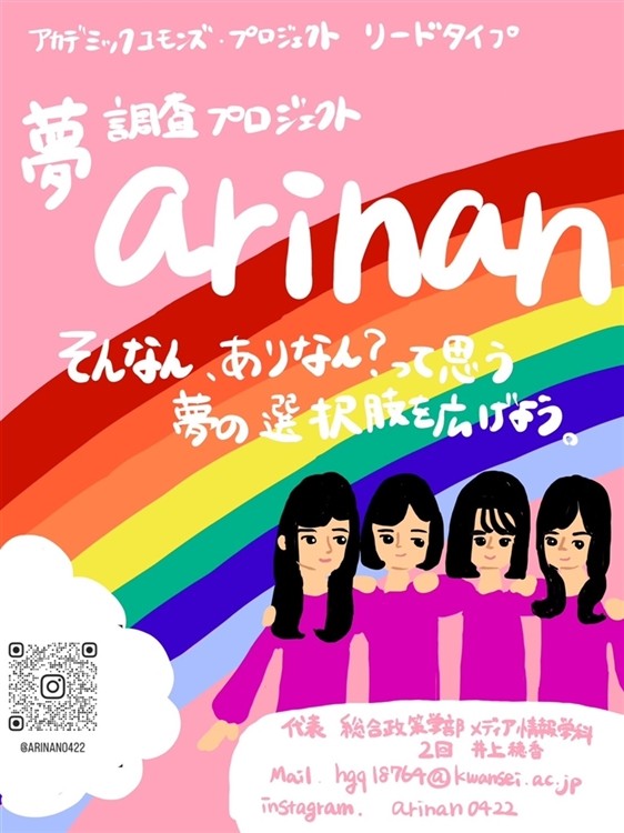 1年間を通して、グループで達成を目指す明確なゴールを設定し、挑戦する。アカデミックコモンズにおける先駆者としての自覚を持ち、他グループ(他者、周囲)の模範にもなる高い成果とプロセスを追求する。